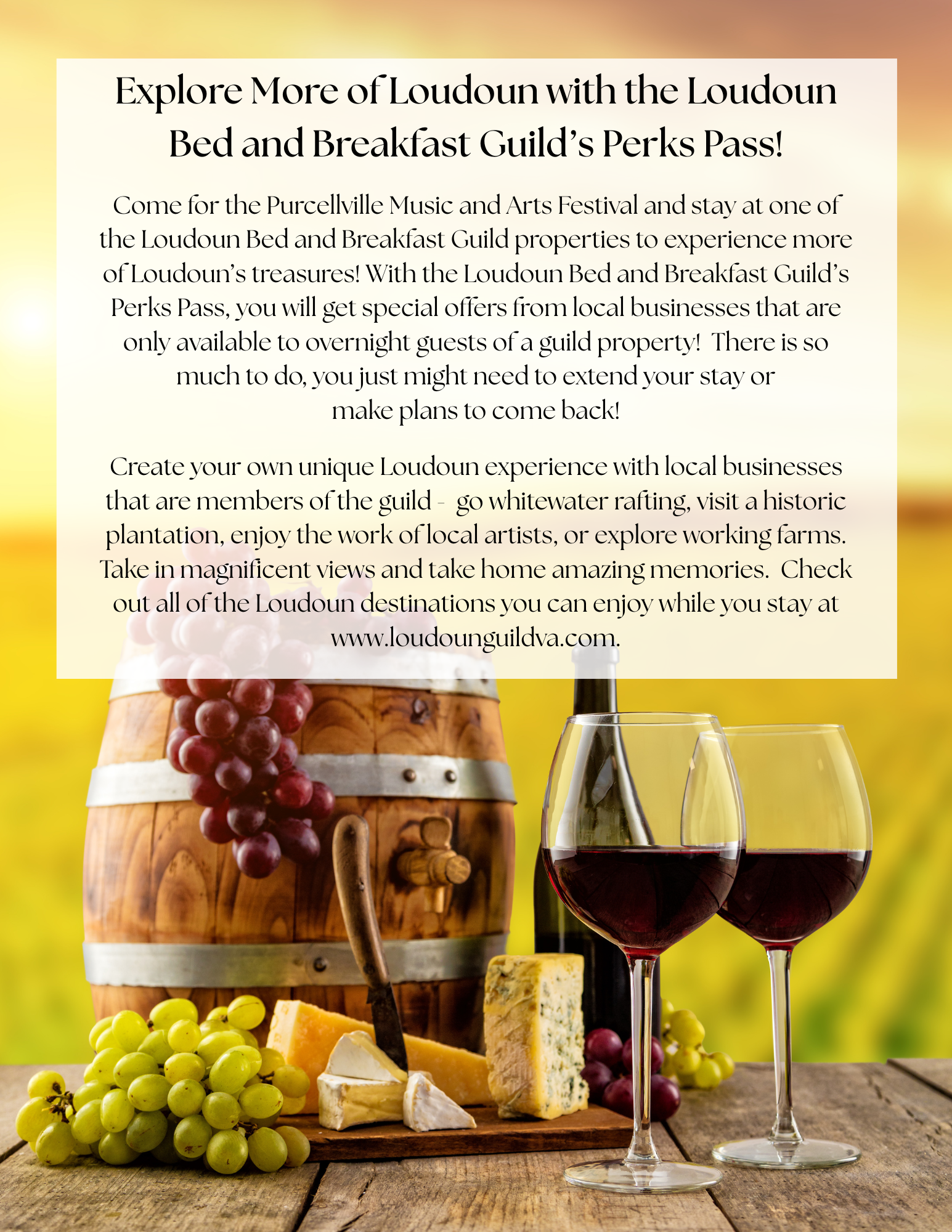 For additional lodging options throughout Loudoun County, visit the Loudoun County Bed & Breakfast Guild, which represents a curated collection of locally owned inns, B&Bs, farm stays, and private cottages. www.loudounguildva.com